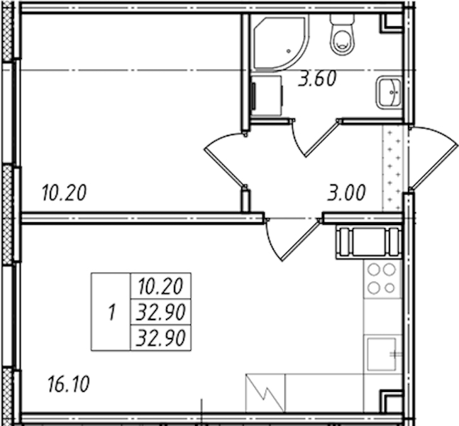 - Площадь32,9 м2