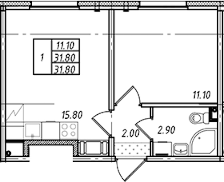 Однокомнатная квартира на 7-ом этаже 31,8 кв.м