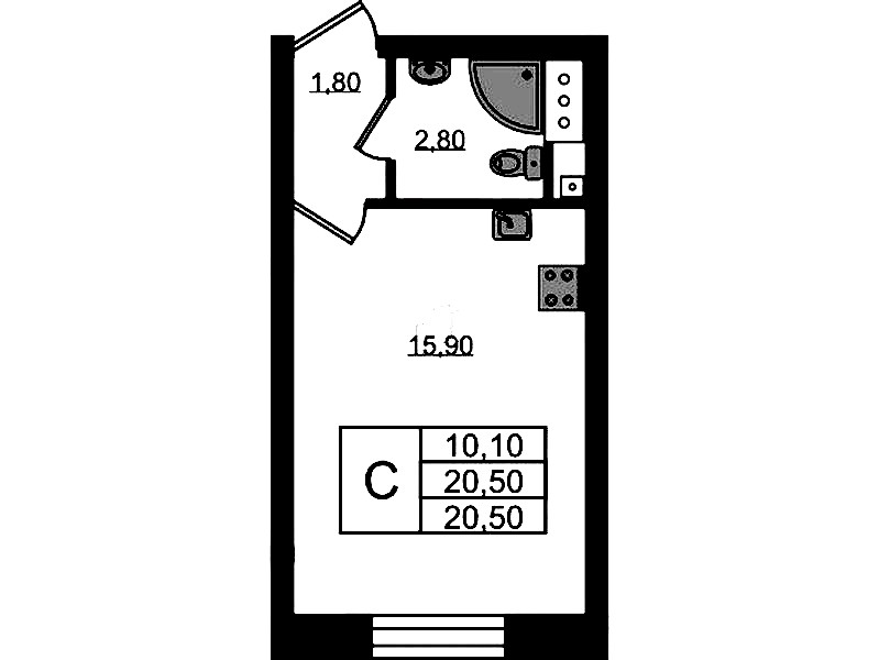Квартира-студия на 15-ом этаже 20,5 кв.м