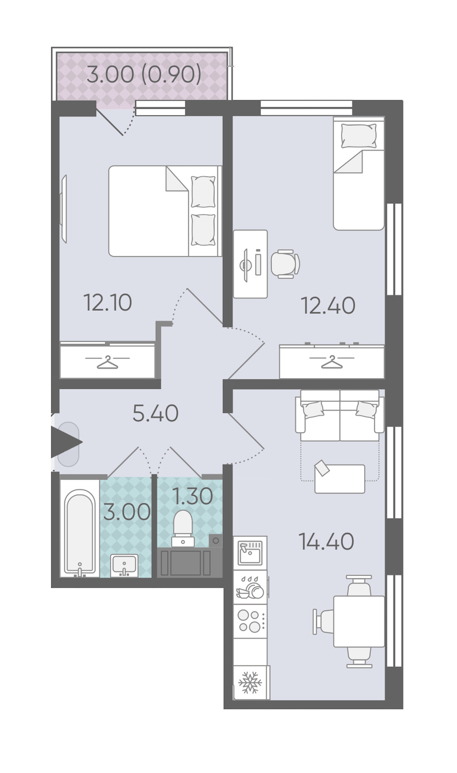 - Площадь кухни14,4 м2
