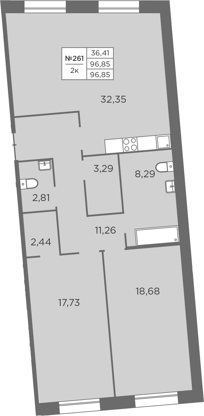 Двухкомнатная квартира на 2-ом этаже 96,85 кв.м