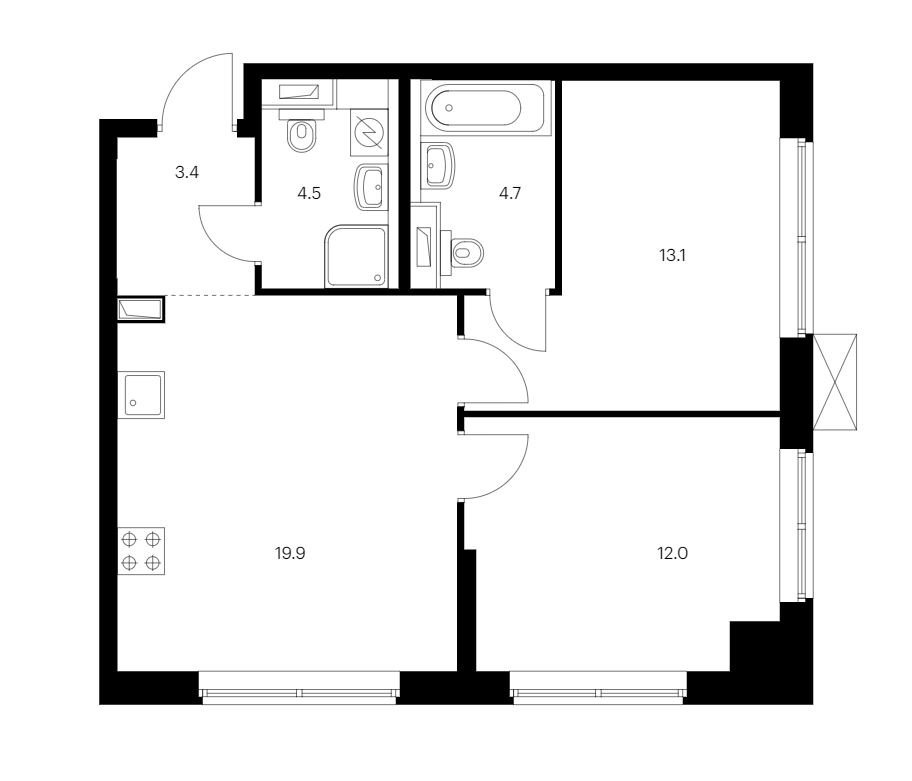 - Площадь кухни19,9 м2
