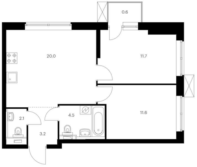 - Площадь53,7 м2