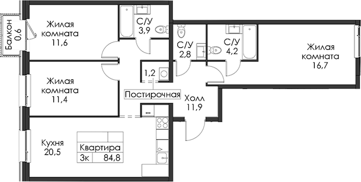 - Площадь84,8 м2
