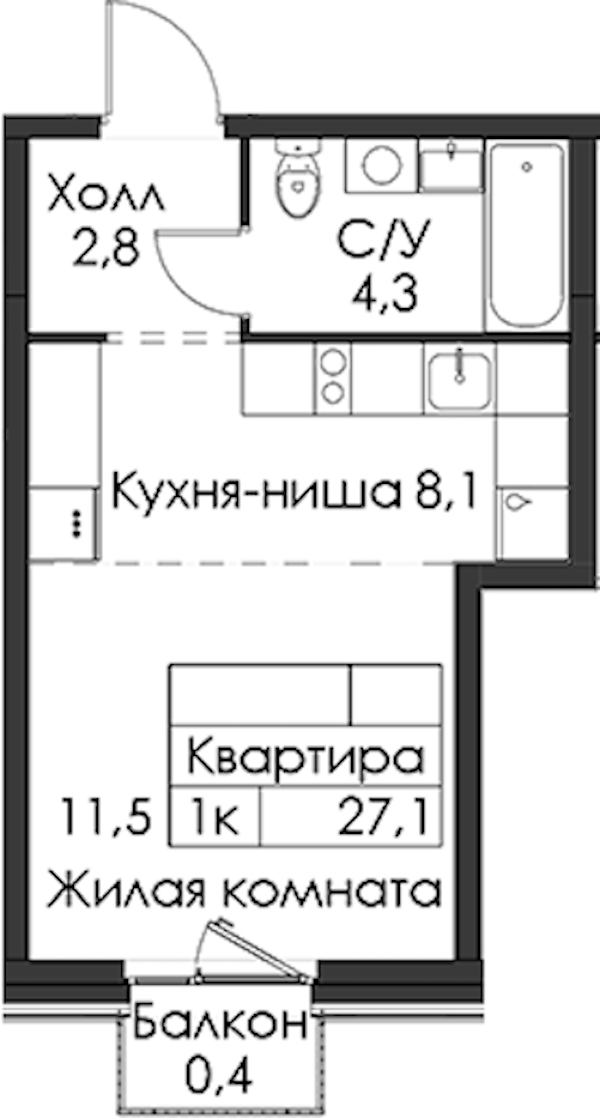 - Площадь27,1 м2