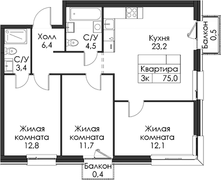 - Площадь75 м2