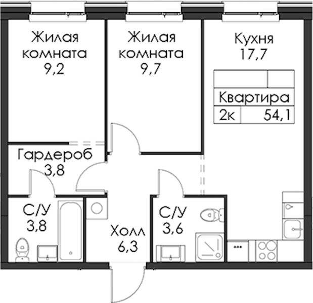 - Площадь54,1 м2