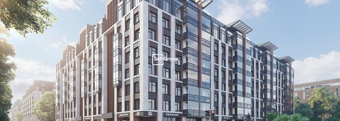 - Вход на территорию осуществляется через три центральные группы, в оформлении интерьера которых продолжена стилистическая линия всего проекта. В элегантном лобби запланированы места для отдыха, зона reception.