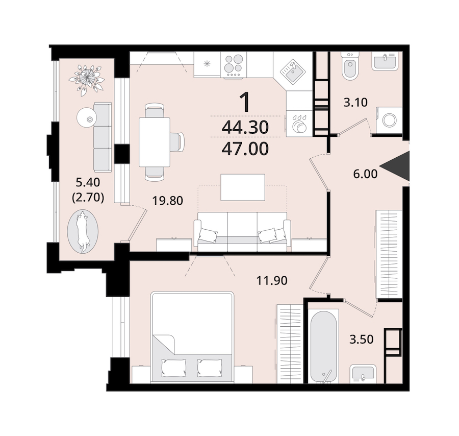 • Площадь47 м2