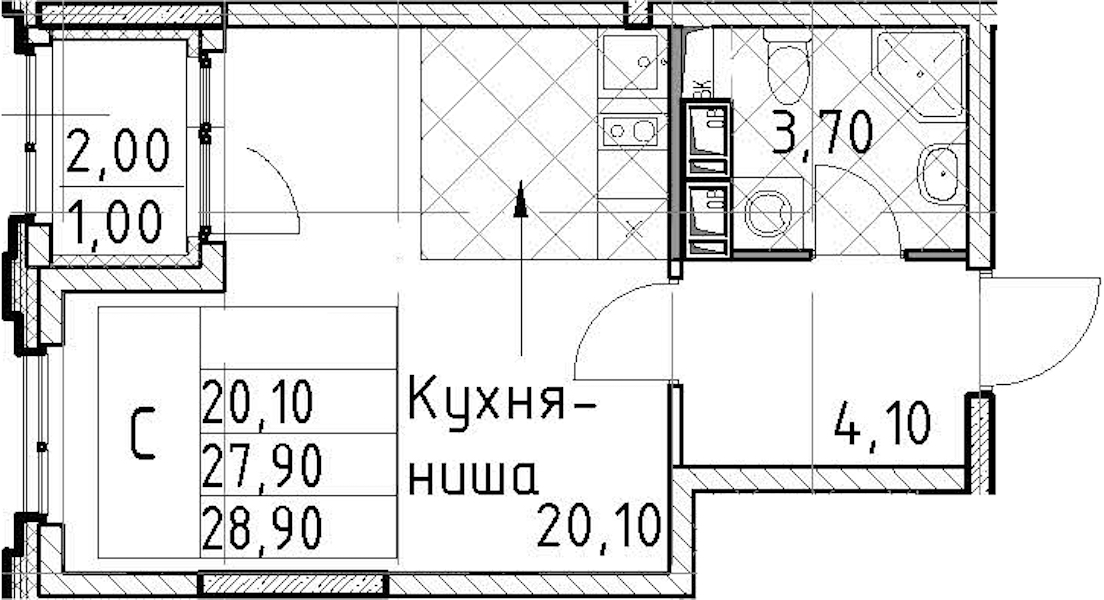 - Площадь28,9 м2