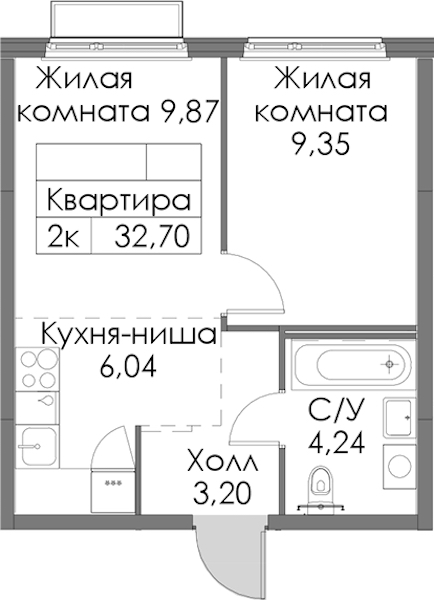 - Площадь32,7 м2