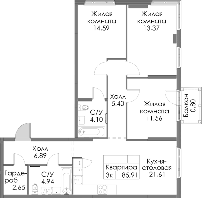 - Площадь85,91 м2