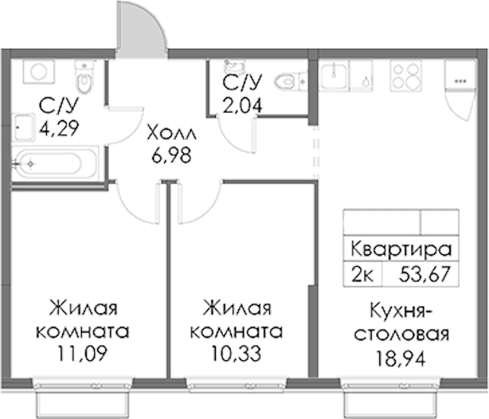 - Площадь53,67 м2