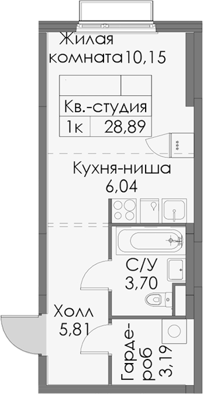 - Площадь28,89 м2
