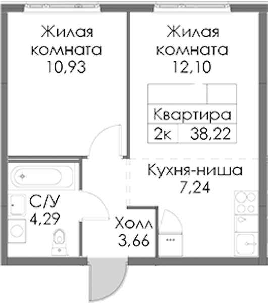 - Площадь38,22 м2