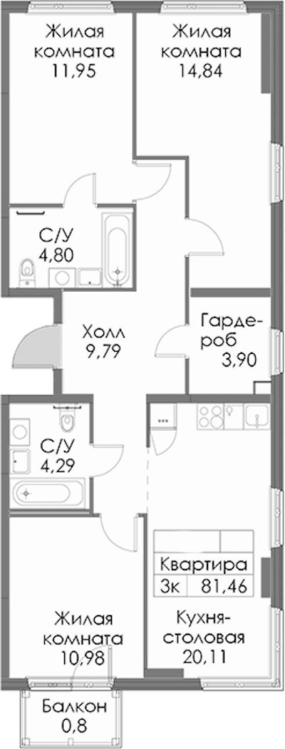 - Площадь81,46 м2