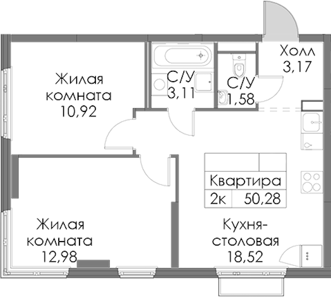 - Площадь50,28 м2