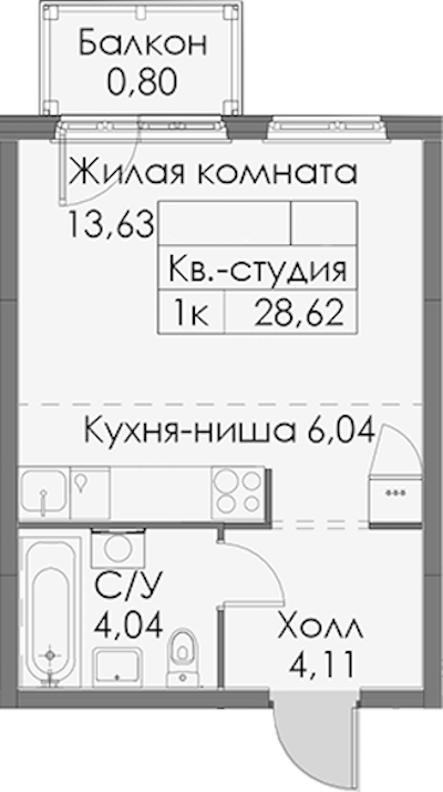 - Площадь28,62 м2