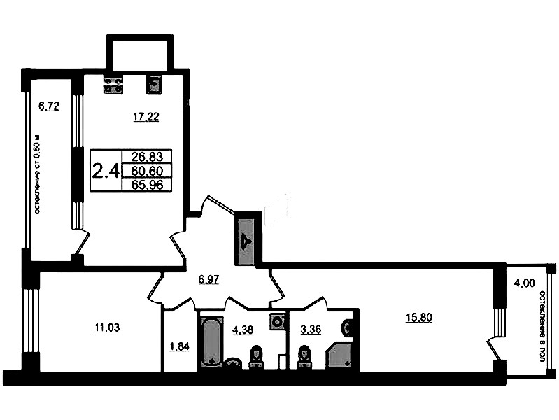 • Площадь60,6 м2