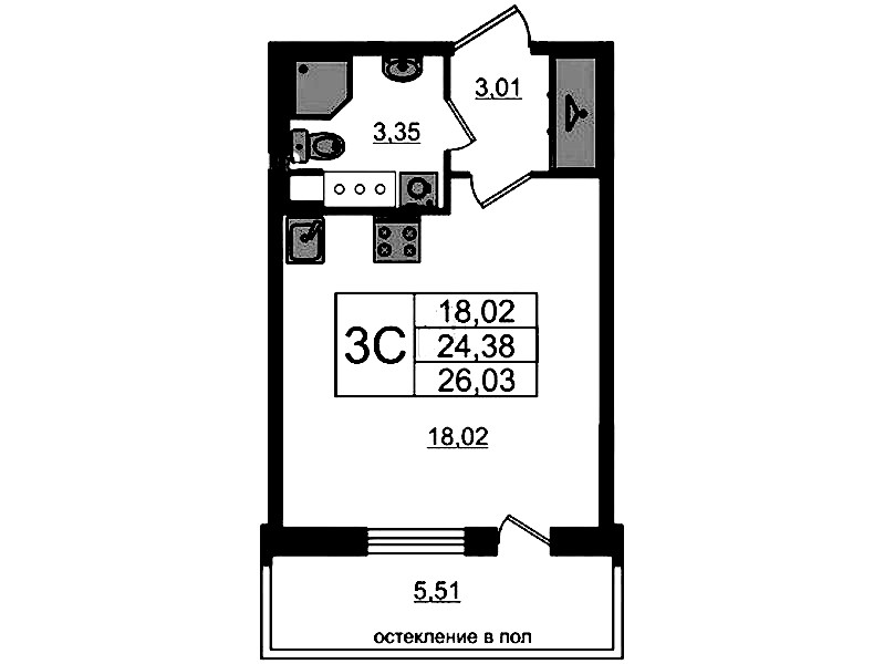 - Площадь24,38 м2
