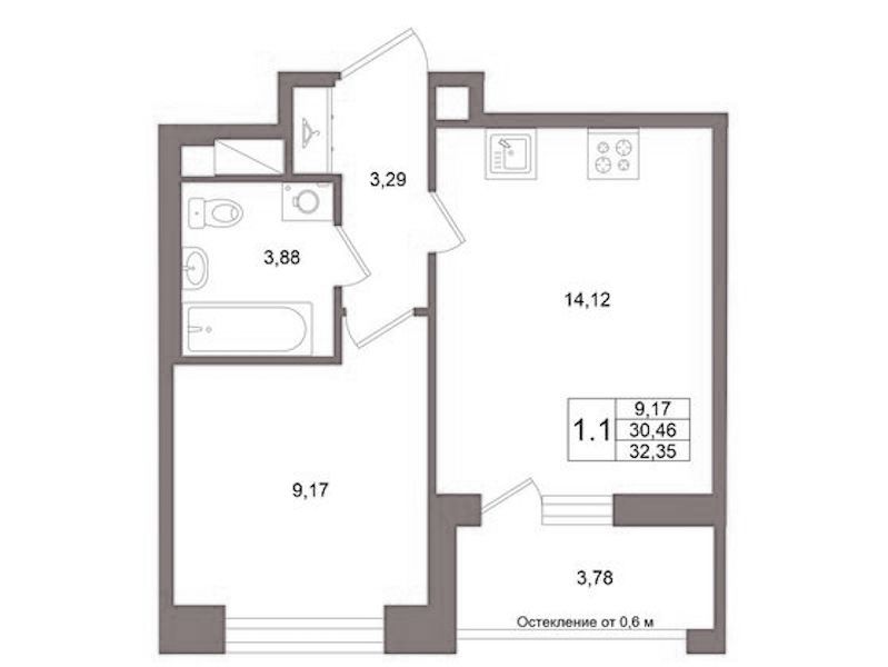 - Площадь30,46 м2