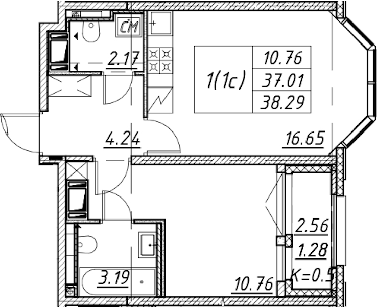 - Площадь38,29 м2