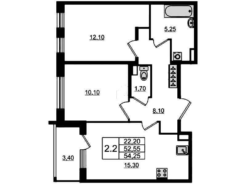 - Площадь52,55 м2