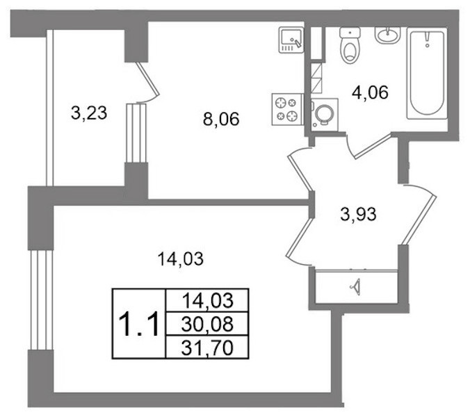 • Площадь кухни8,06 м2