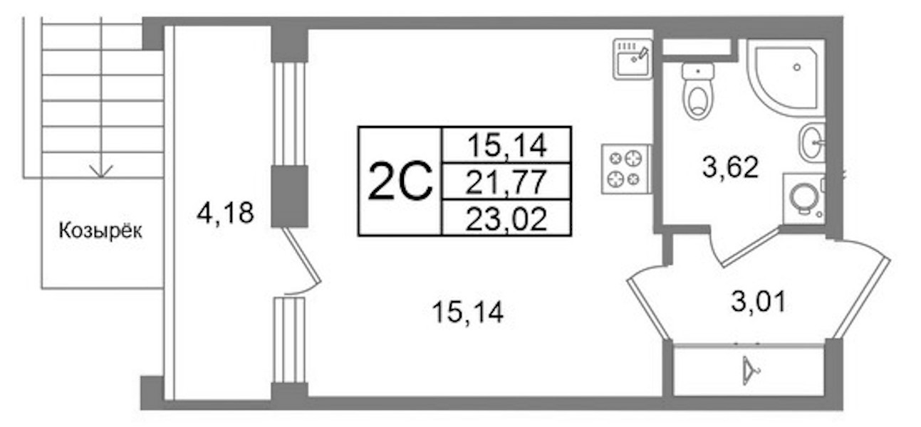 - Площадь21,77 м2