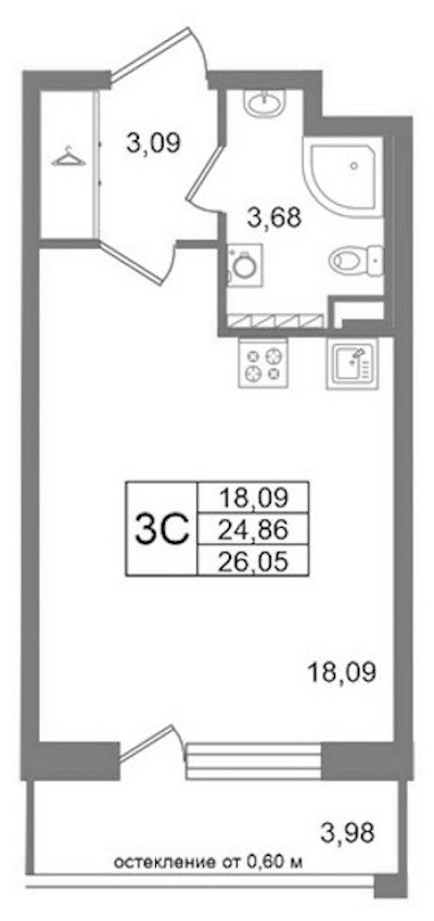 • Площадь24,86 м2