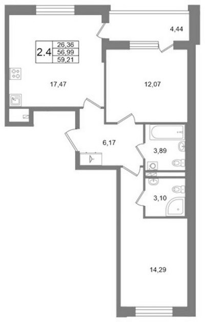 - Площадь кухни17,47 м2