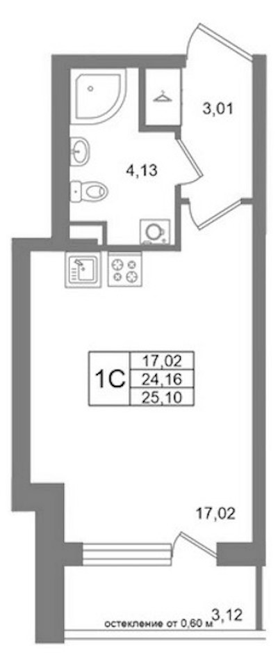 - Площадь24,16 м2
