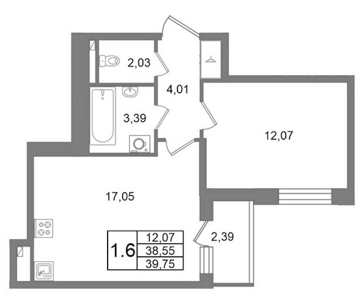 - Площадь38,55 м2