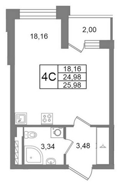 - Площадь24,98 м2