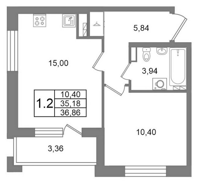 - Площадь35,18 м2