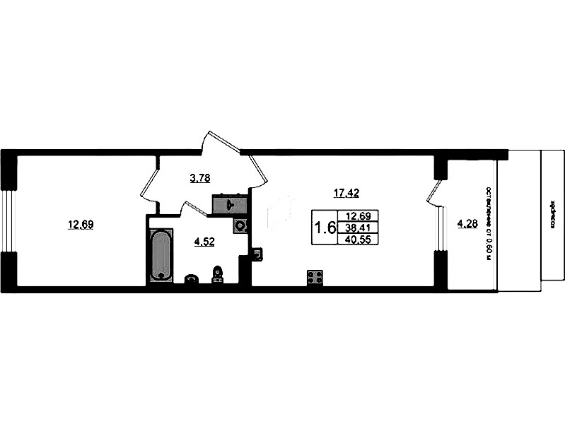 Однокомнатная квартира на 2-ом этаже 38,41 кв.м