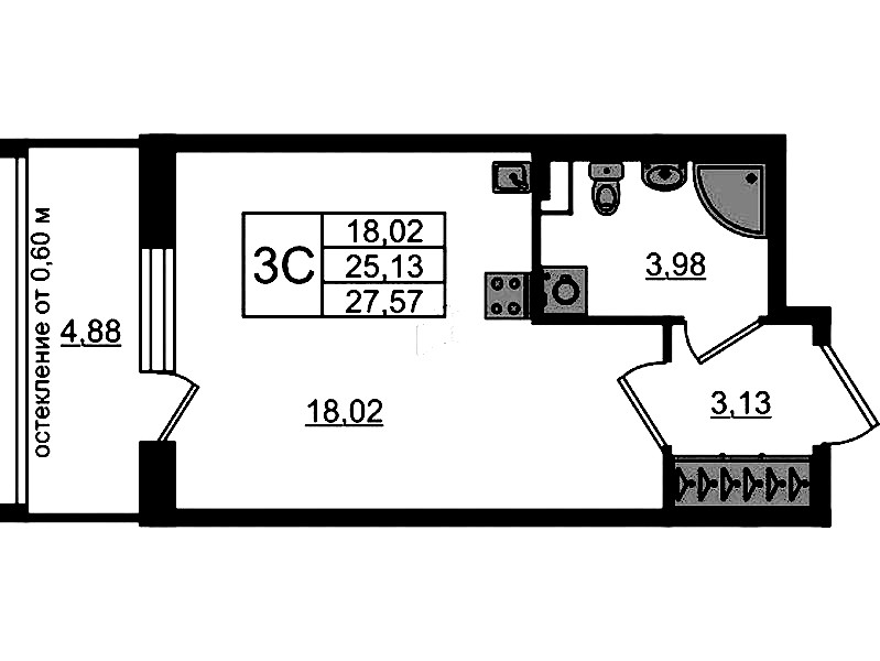 Квартира-студия на 1-ом этаже 25,13 кв.м