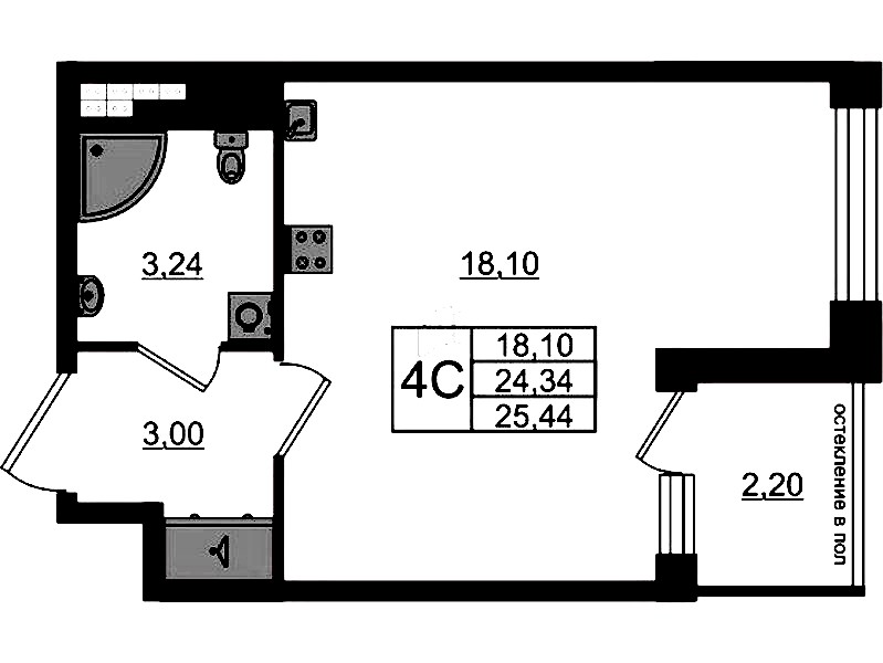 Квартира-студия на 4-ом этаже 24,34 кв.м