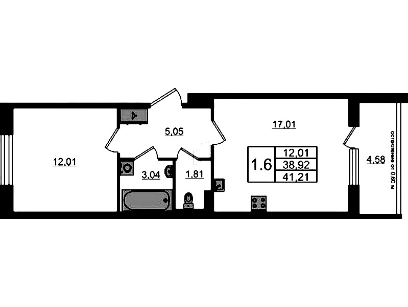 - Площадь кухни17,01 м2