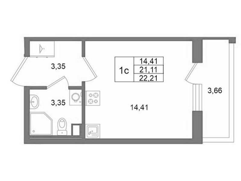 - Площадь21,11 м2