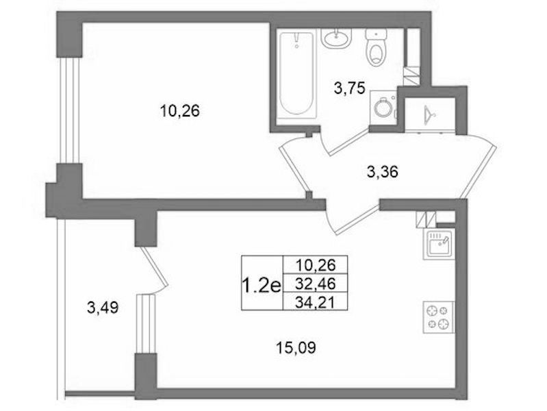 - Площадь кухни15,09 м2