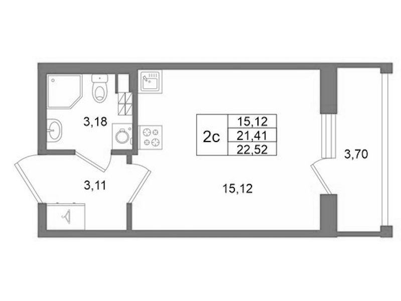 Квартира-студия на 4-ом этаже 21,41 кв.м