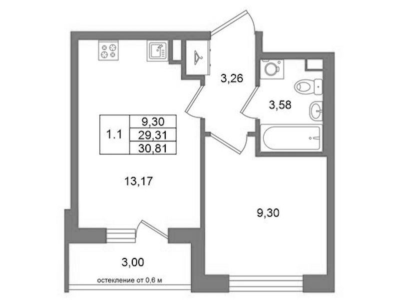- Площадь29,31 м2