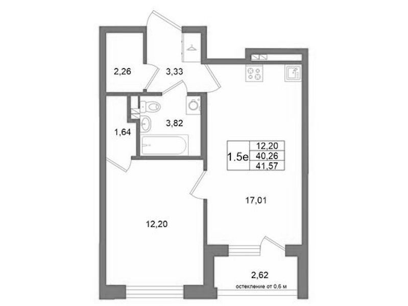 Однокомнатная квартира на 4-ом этаже 40,26 кв.м