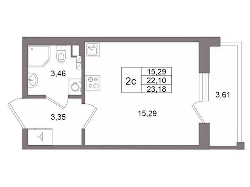 - Площадь22,1 м2