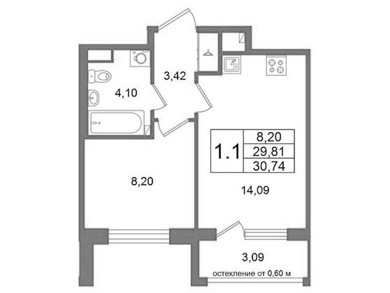 Однокомнатная квартира на 3-ем этаже 29,81 кв.м