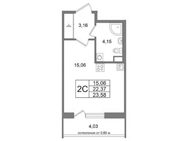 - Площадь22,37 м2