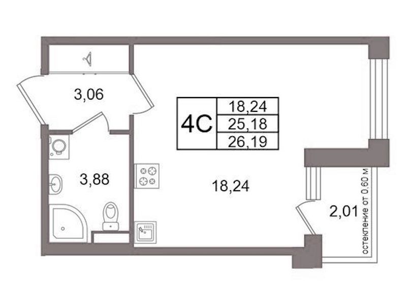 - Площадь25,18 м2