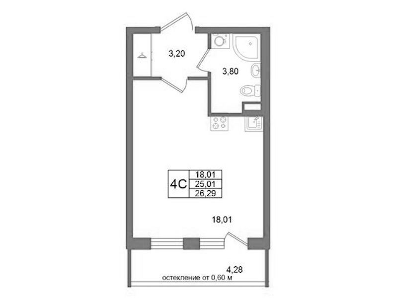 Квартира-студия на 1-ом этаже 25,01 кв.м