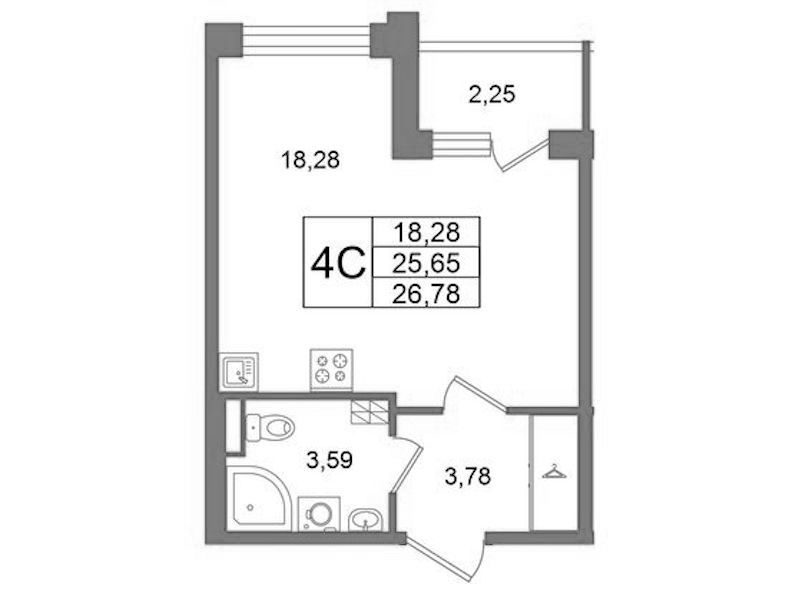 Квартира-студия на 4-ом этаже 25,65 кв.м